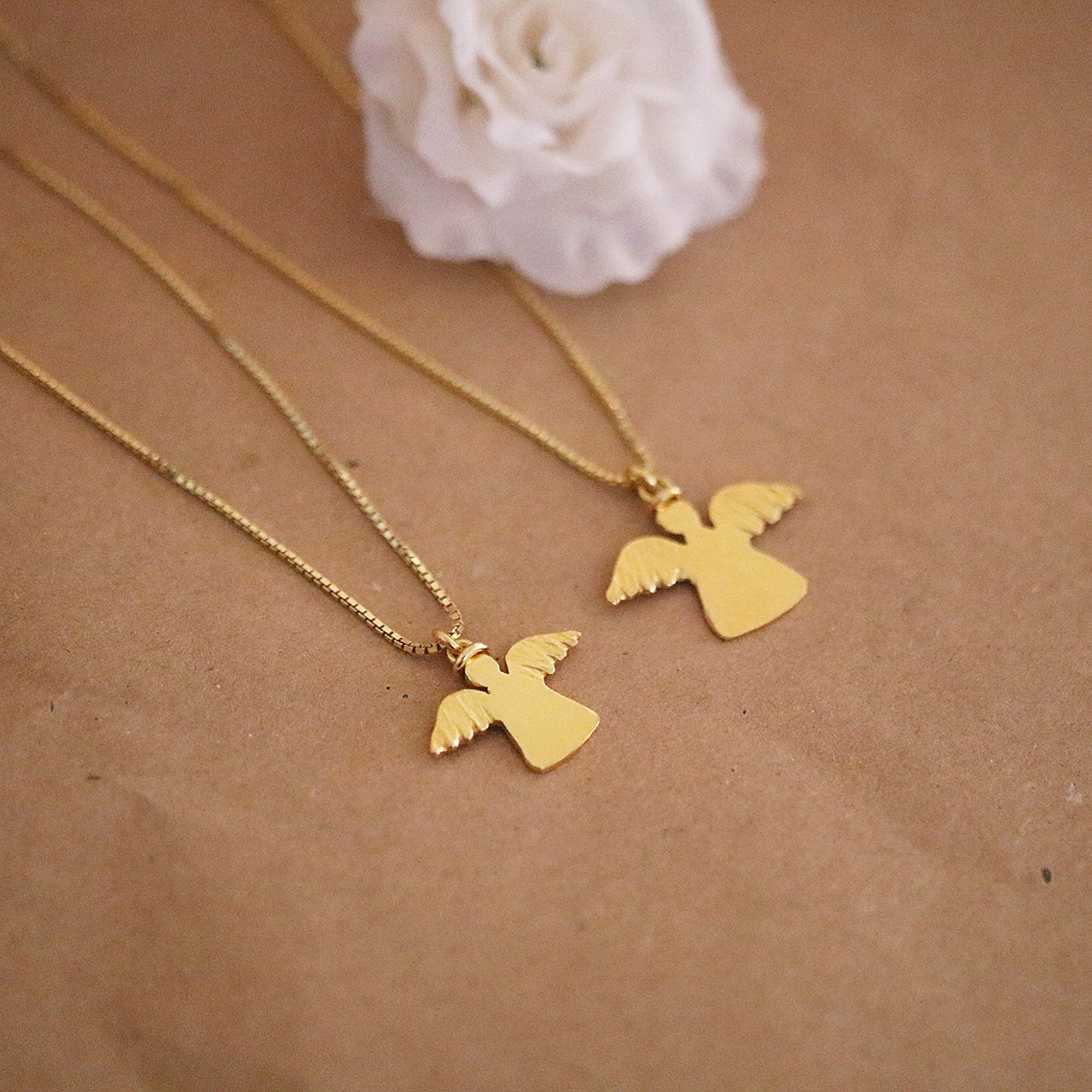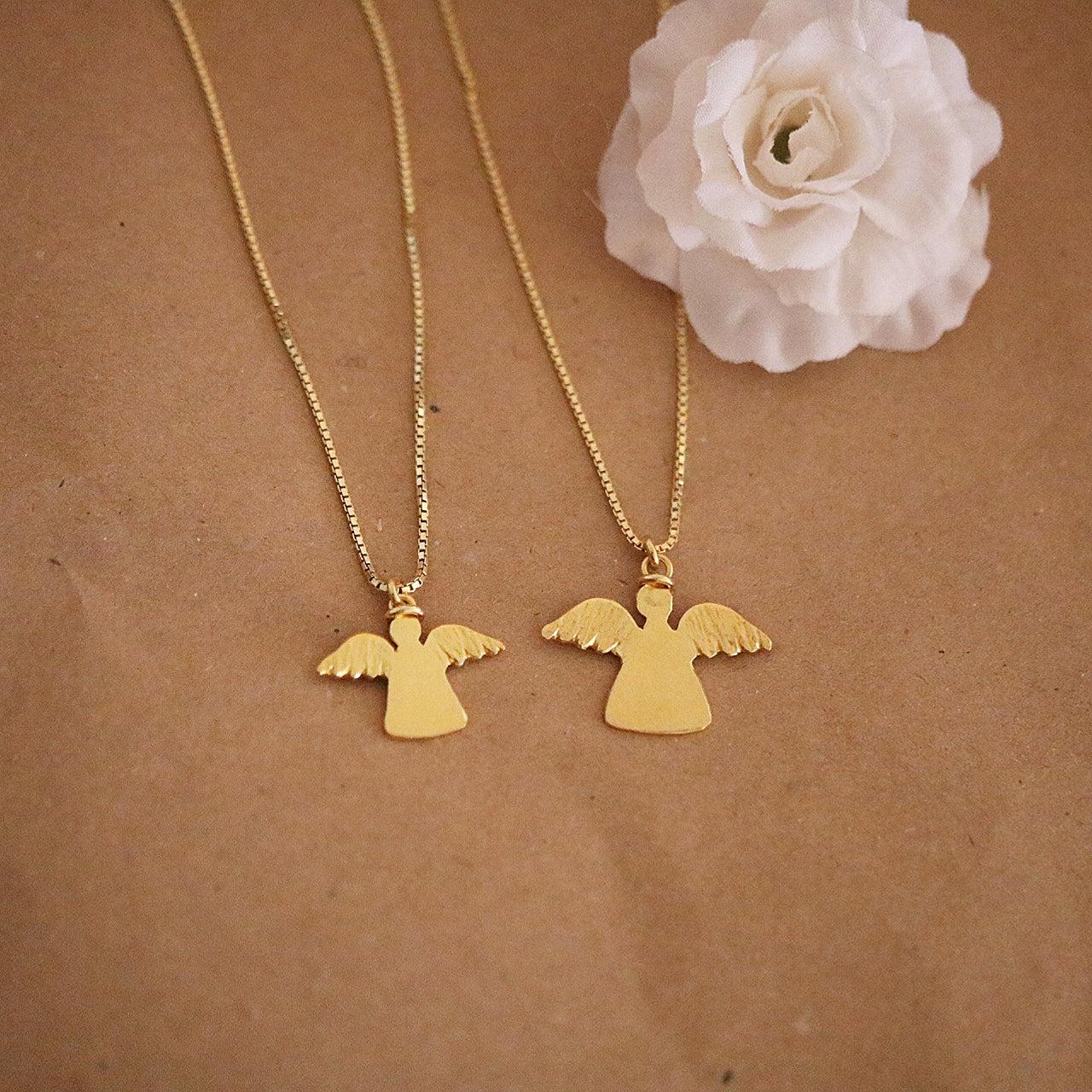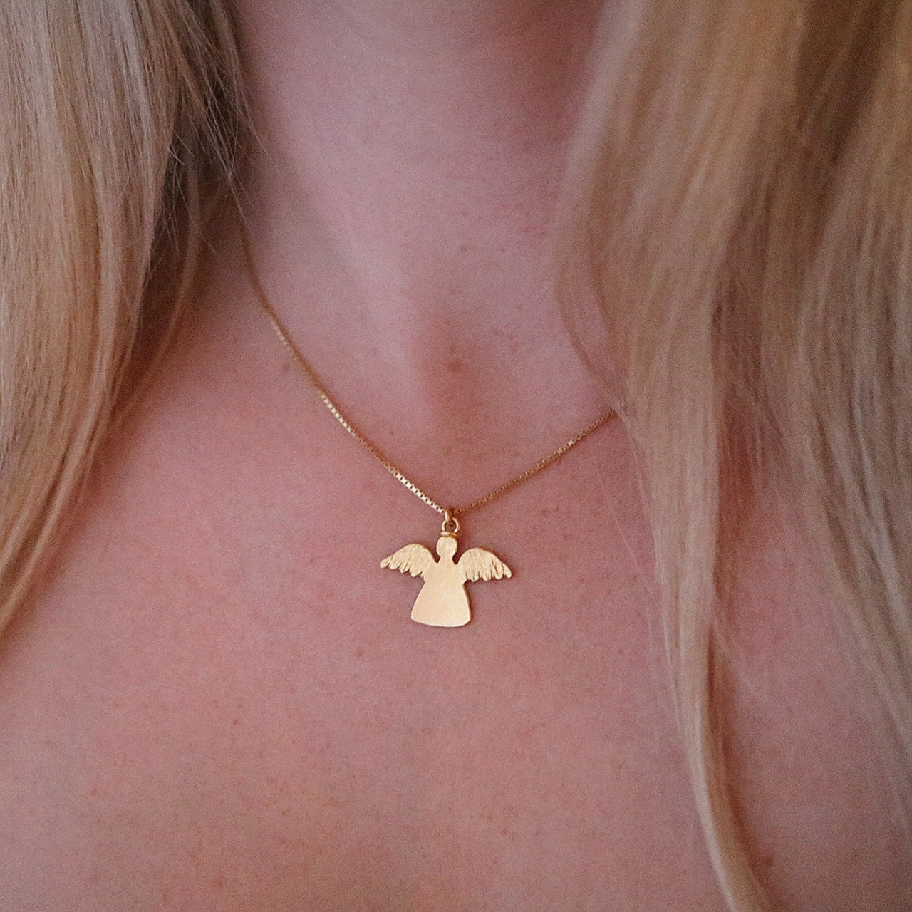 Denne søte engelen er håndlaget i 925 sølv som er forgylt.