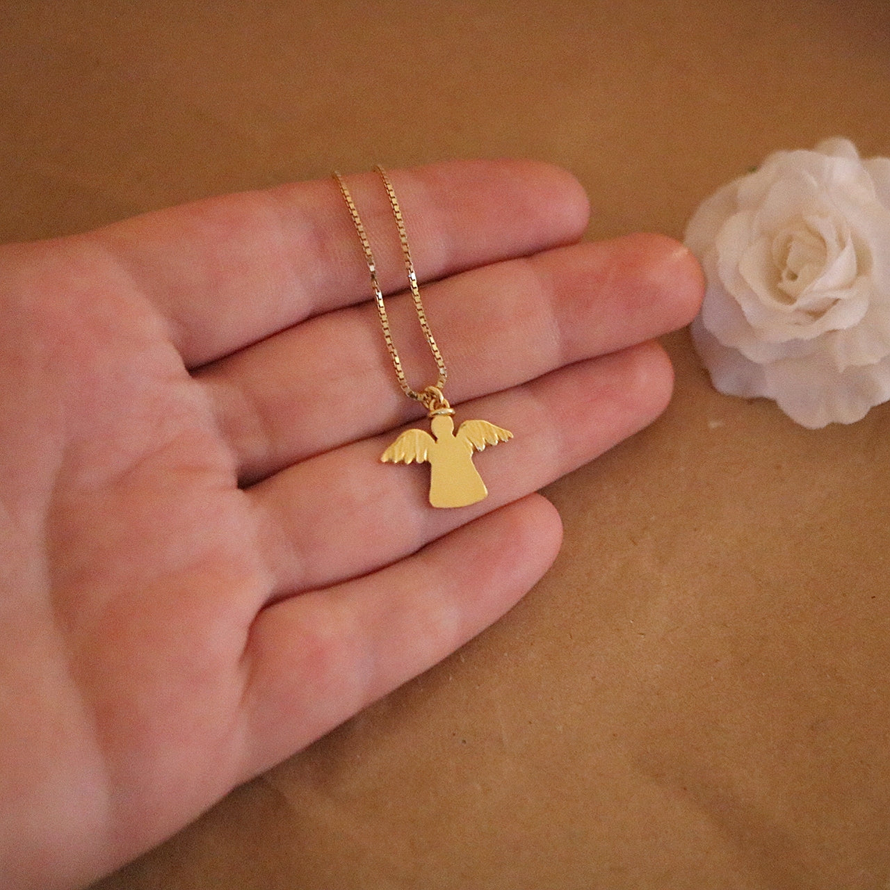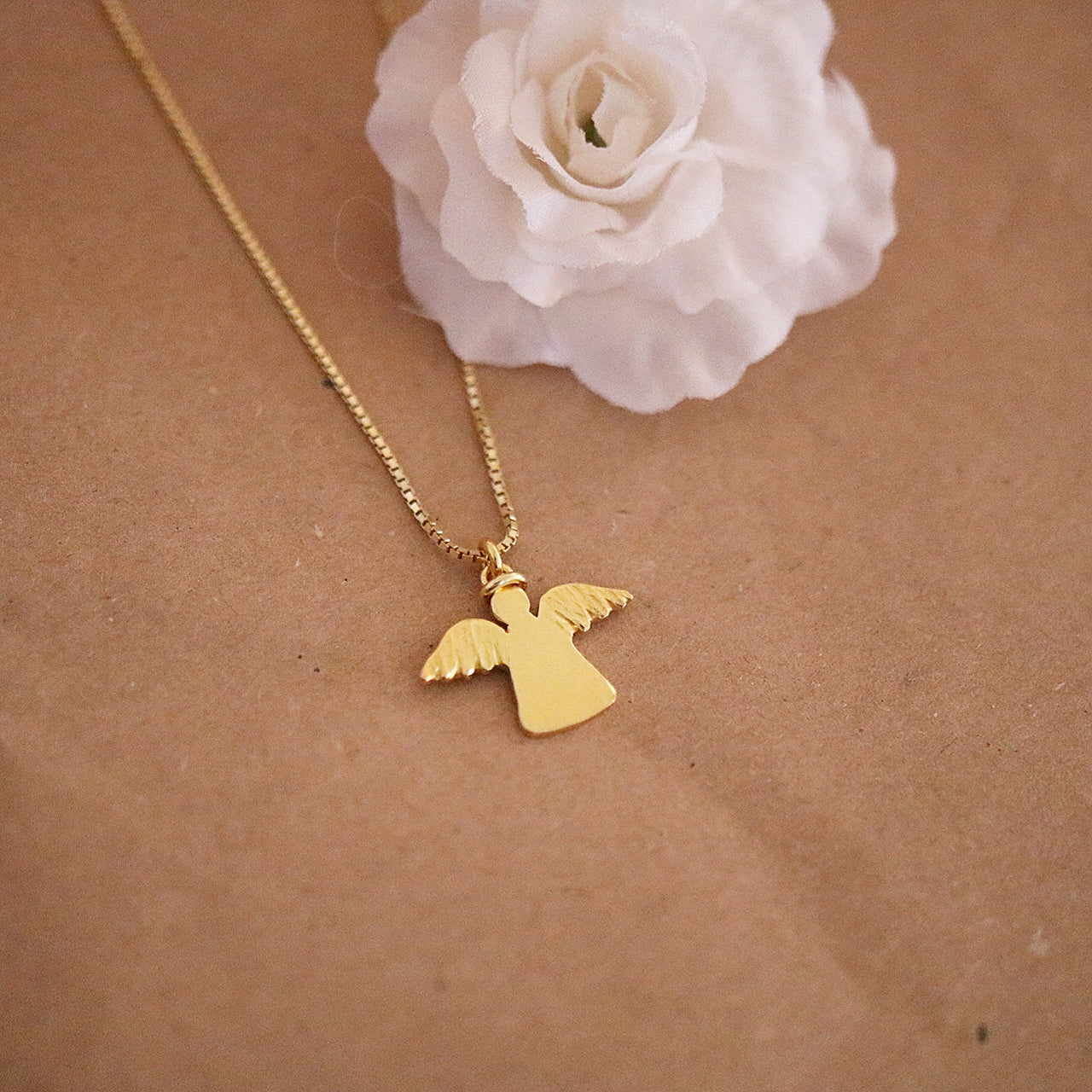 Denne søte lille engelen er håndlaget i 925 sølv som er forgyllet.