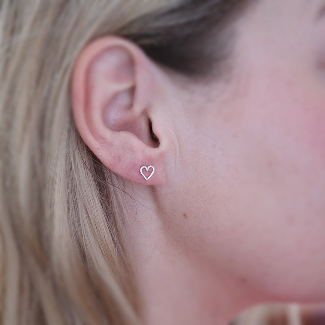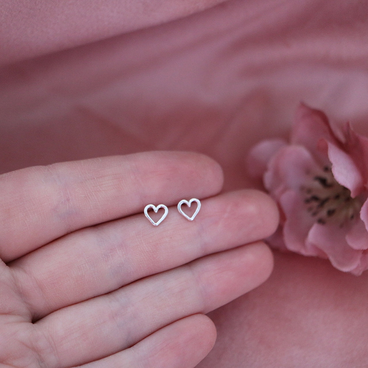 Søte håndlagde hjerteøredobber i sølv.