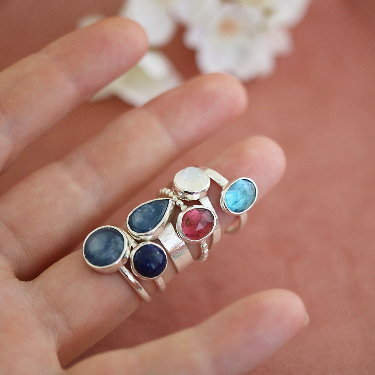 Nydelig kulering med en en rosa turmalin med fasetter!